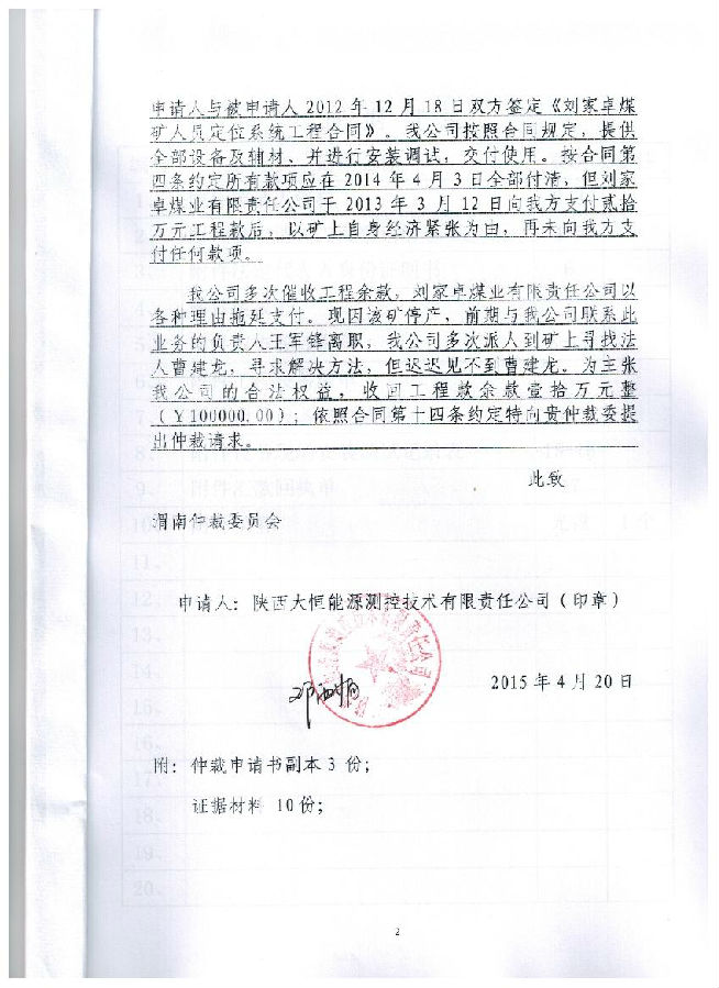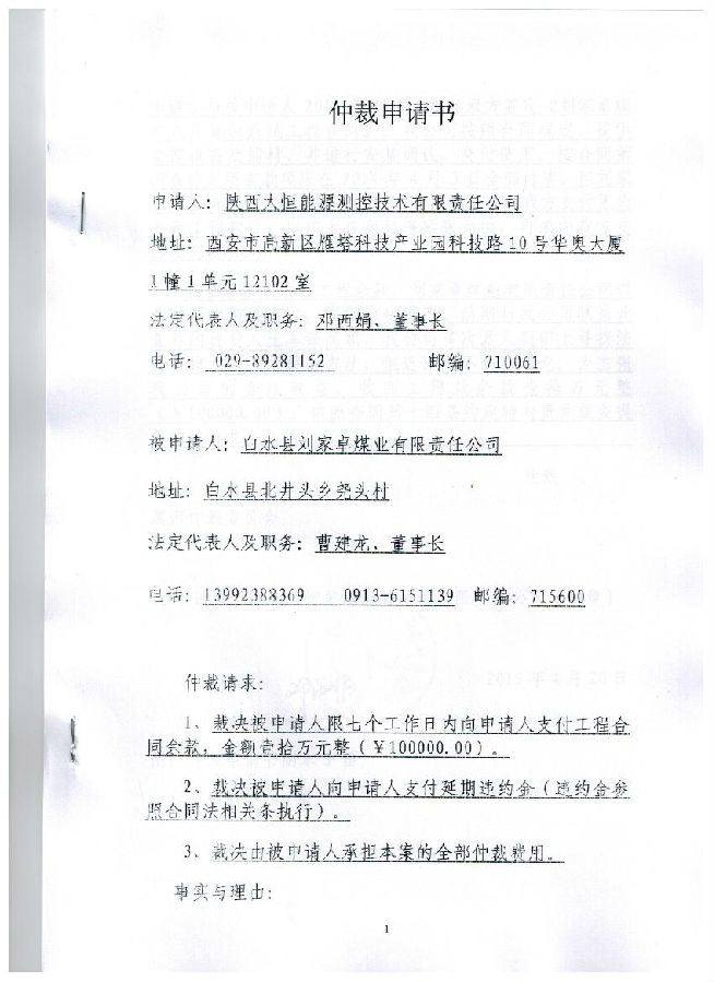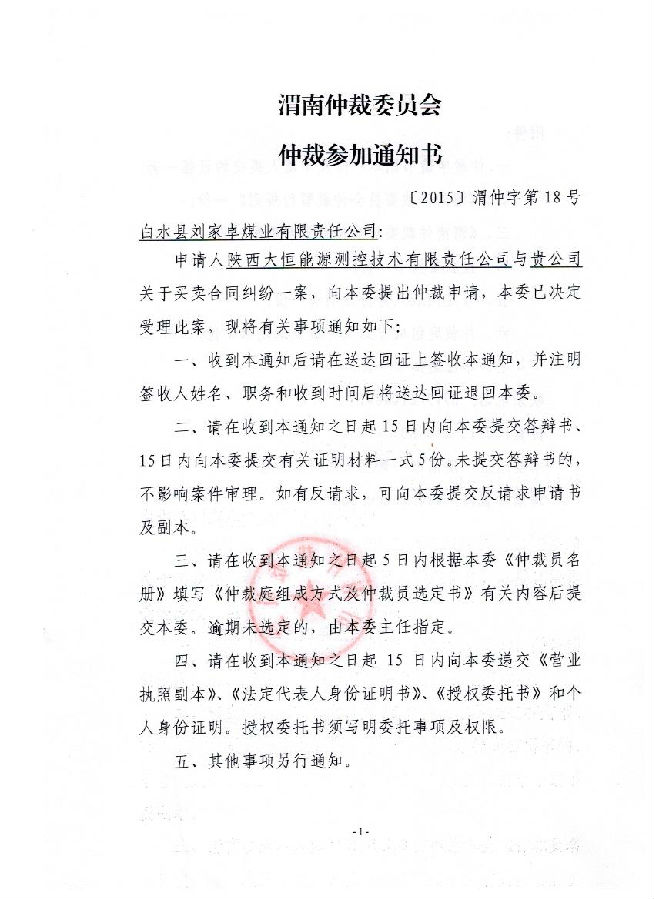 陜西大恒能源測控技術(shù)有限責任公司與白水縣劉家卓煤業(yè)有限責任公司買賣合同糾紛一案公告