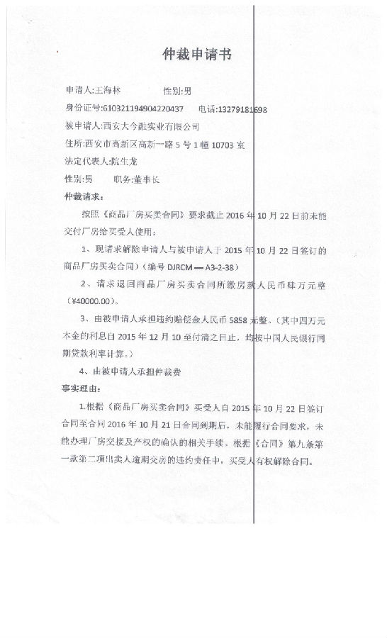 王海林與西安大金融實業(yè)有限公司一案公告