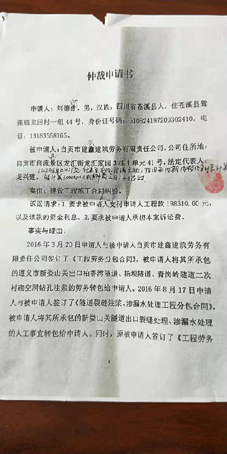 劉德財與自貢市建興建筑勞務(wù)有限責(zé)任公司一案公告