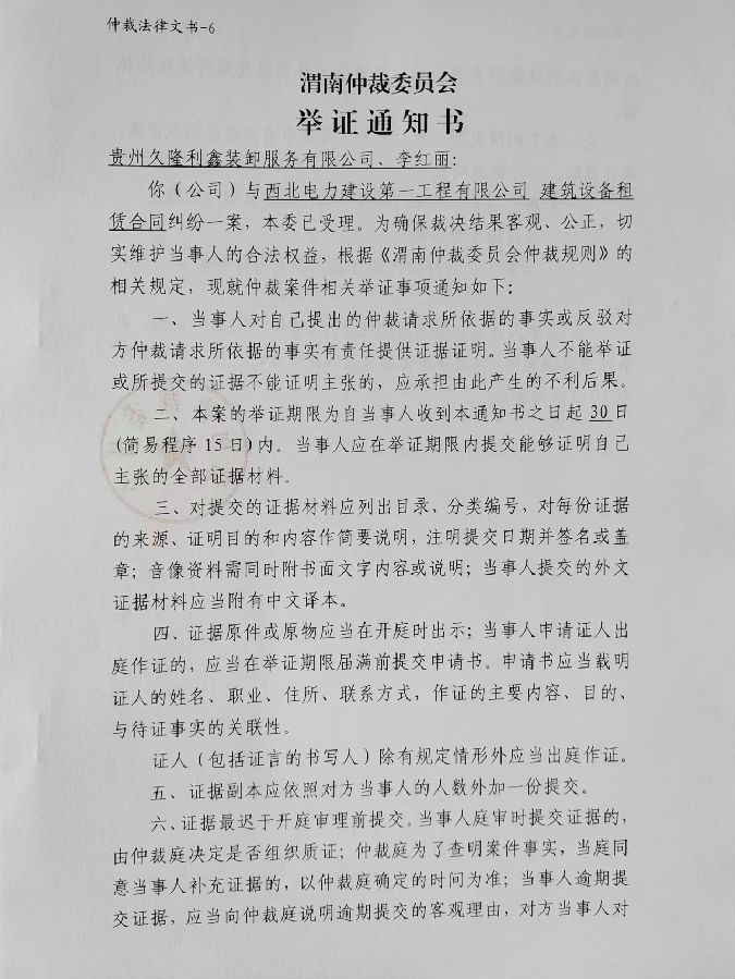 西北電力建設(shè)第一工程有限公司與貴州久隆利鑫裝卸服務(wù)有限公司、李紅麗建筑設(shè)備租賃合同糾紛案公告